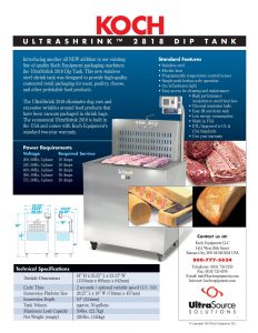 Koch Ultrashrink 2818 Dip Tank. The UltraShrink 2818 eliminates dog ears and excessive wrinkles around food products that have been vacuum packaged in shrink bags.