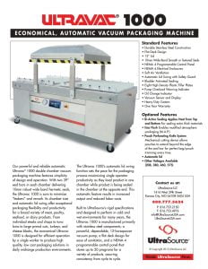 UltraSource Ultravac 800 Double Chamber Vacuum Packaging Machine. Our new Ultravac® 800 double chamber vacuum packaging machine has been designed for economical, single operator efficiency in a daily use environment where operational simplicity and mid-range production speeds are required.