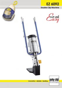 Poly-Clip EZ 6092 Double-Clip Machine. The clipping machine EZ 6092 of the Easy Clip Line® is employed for closing nets used as outer packaging for turkeys as well as for the net packaging of ham or of fruits and vegetables. But it is also capable of securely closing casings or tubes.