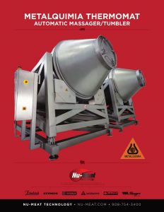 Nu-Meat Metalquimia Thermomat Automatic Massager/Tumbler. Excellent performance of the latest technological developments in cooked meat processing, such as a cook-in bag system using whole muscles, whole phosphate-free ham, roast beef, pastrami, poultry products, etc.