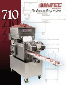 Nutec 710 Patty Former. The state-of-the-art counter is not limited by the number of patties. You are able to set the counter for any number of patties in a 6” high stack.