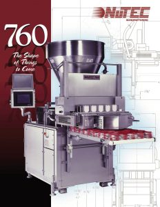 Nutec 760 Food Former. The unique NuTEC vane pump forming system assures minimal product working and provides exceptional product quality. The former gently portions up to 7,000 pounds per hour. The vane pump feeds directly to the mold plate cavity.