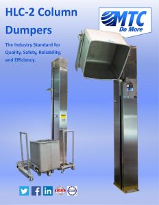MTC HLC-2 Column Dumpers. Portable Base w/four alathane swivel casters w/locks & roller bearings, and one floor lock; base includes swivel locks. Push buttons in case or stainless steel Nema 4X external electrical enclosure.