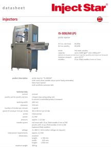 Inject Star IS-300/60 (P) Pickle Injector. Pickle injector “IS-300/60“ with crank drive (needle return point freely selectable). New Twist System with synthetic conveyor belt.