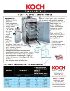 Koch Grand Prize 3 Multipurpose Smokehouse. Stainless steel interior and exterior. Choice of two models, manual or fully automatic. Recirculating heating system with excellent natural smoke and air circulation.