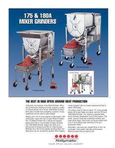 Hollymatic 175 & 180A Mixer Grinders. Hollymatic, the inventor of the Mixer/Grinder, offers two powerhouse models to further process a variety of meat products: the 175 and 180A Mixer/Grinders.