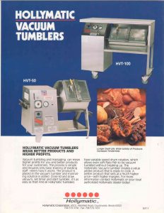 Hollymatic HVT-50/HVT-100 Vacuum Tumblers. Vacuum tumbling and massaging can mean higher profits for you and better products for your customers. The process is simple and requires only basic training of existing staff.
