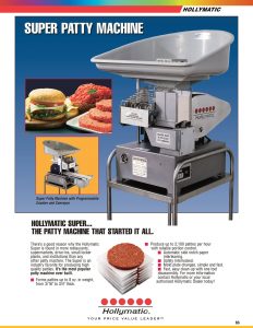 Hollymatic Super Patty Machine. There’s a good reason why the Hollymatic Super is found in more restaurants, supermarkets, drive-ins, small locker plants, and institutions than any other patty machine.