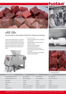 Holac WS 150 Dicer. Single-part, all-plastic feed-auger, independent from cutting grid. Adjustable speed of cutting blade and auger. Product window in blade chamber. Simple and effective sanitation.