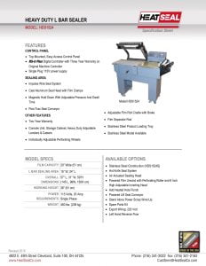 Heat Seal HDS1524 Heavy Duty L Bar Sealer. Top mounted, easy access control panel. Magnetic hold down with adjustable pressure and dwell time. Adjustable film roll cradle with brake.