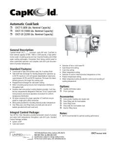 Groen CKCT Series Automatic Cook Tank. Tube shell heat exchanger for heating designed for operation up to 90 PSI maximum. Unit will operate dependably at steam pressures between 20 PSI and 90 PSI maximum.