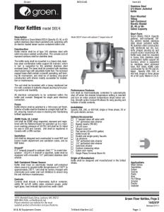 Groen DEE/4 Floor Kettles. Kettle interior shall be of type 316 stainless steel with solid one-piece welded construction. The console and all exposed surfaces shall be stainless steel.