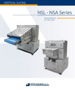 Grasselli NSL-NSA Series Vertical Slicers. Slicing machine that cuts perfectly parallel slices with Grasselli multi-blade cutting system. Slicing capacity of up to 2,000 kg/hour.