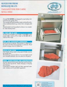 Grasselli KSL Horizontal Slicer. The Grasselli KSL horizontal slicer meets the specific requirements for "with grain" and horizontal slicing of many fresh boneless cuts of beef, pork, lamb, poultry and fish, producing slices as thin as 2mm.